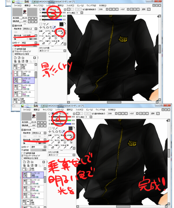 こういうことです。普通に影の色作って塗るより、勝手に下地の色の影っぽくなってくれるんです。便利便利!