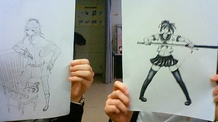 1年と、2年それぞれの絵を持ち寄って見せ合いでした´ω`))