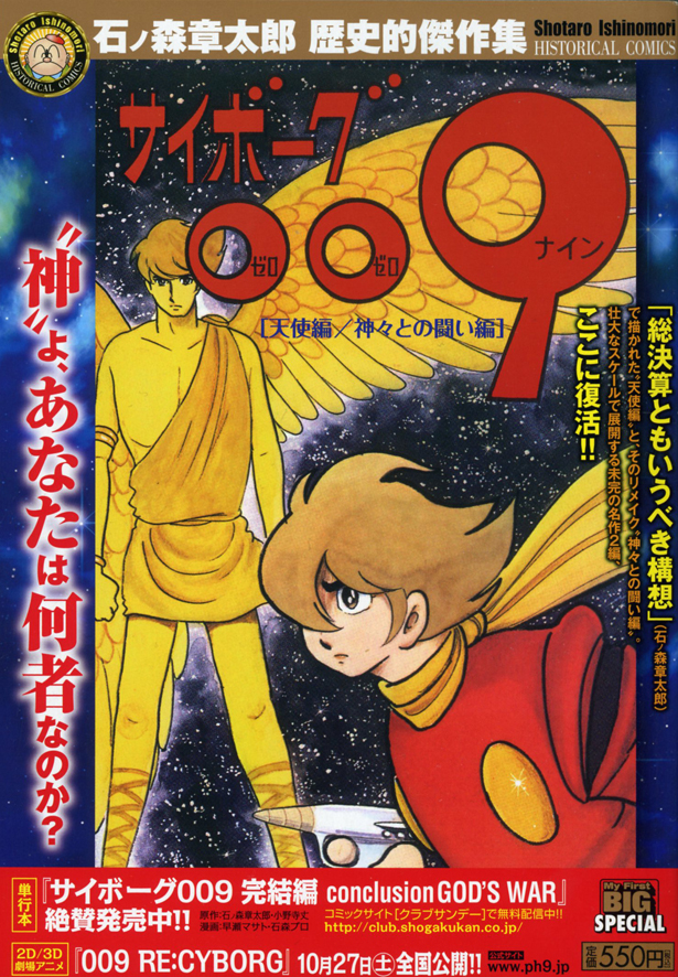 もっとも、もとは押井監督のために書かれたものなので、劇場版『009 RE: CYBORG』には押井テイストは残されています。特に私が注目したのが「天使の化石」です。押井監督の作品の中に『天使のたまご』という難解な作品があります。その中に「天使の化石」が出てくるのです。「卵を抱いた少女」「天使の化石」「空飛ぶ魚の影」「実体のない魚を追う漁師達」「機械仕掛けの太陽」「ノアの箱船」とほとんど台詞のない映像は、当時の私を唸らし、困惑し、さらに「こんな映像を創るのはどんな頭なのか」と押井監督に再度リスペクとさせました。まさに今にして思えば、それは石ノ森章太郎先生の世界観に通じるのではないかと、考えています。石ノ森先生の『サイボーグ009』の「天使編」、「神々との戦い編」は、シリーズの完結編として構想されながらも、未完に終わった石ノ森先生の遺作です。特に「神々との戦い編」では、説明の無いままに情景が変わっていき、『天使のたまご』のように読むものを置き去りにしていったです。