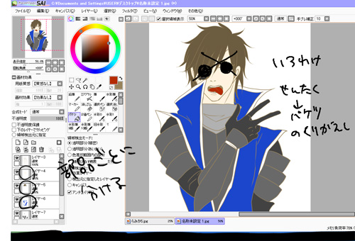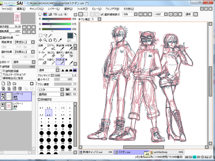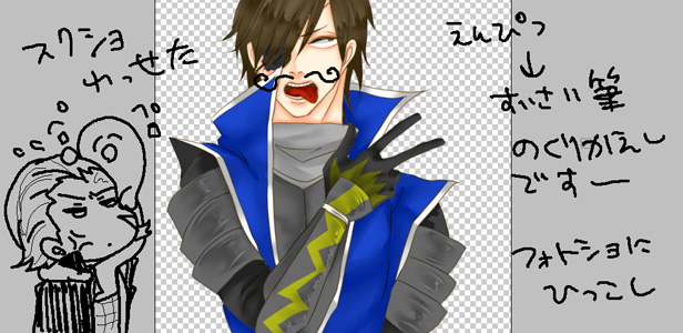 昨日のラフの透明度を30%くらいにして、新しいレイヤー作って