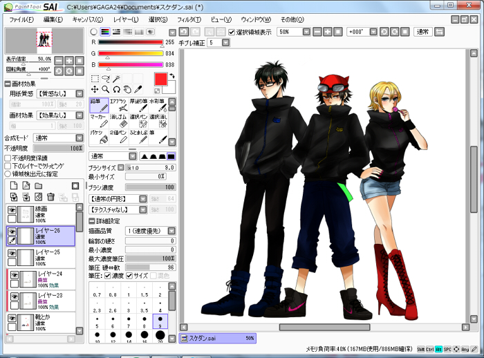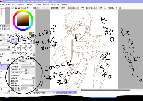 ペンの設定は適当です。描きやすかったらそれでいいです。