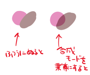 あと、影を塗るときは私は合成モードを乗算にします。